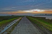 Hier zie je het fietspad in de Arkemheen polder bij Nijkerk gezien vanaf de dijk richting Spakenburg.