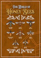Dit liefdevol ontworpen overzicht toont tien verschillende soorten honingbijen van over de hele wereld. Elke bij is gedetailleerd geïllustreerd en gelabeld met de Engelse naam, waaronder de zwarte dwerghoningbij, de oostelijke honingbij, de reuzenhoningbij, de Himalaya-reuzenhoningbij, de Filippijnse honingbij, de dwerghoningbij, de…