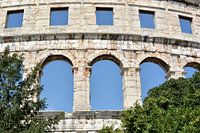 De wereldberoemde Arena in Pula aan de kust van de Adriatische Zee in Kroatië. De stad Pula is beroemd om zijn ruïnes uit de Romeinse tijd. Het Arena amfitheater werd in de 1e eeuw gebouwd en wordt ook nu nog voor evenementen gebruikt.