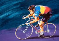 De wielrenner in actie.  Acryl op papier door de Nederlandse kunstenaar en illustrator Hans Sturris.