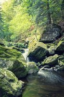 De Steinklamm in het Beierse Woud. Een schilderachtige plek toont de wilde natuur en de energie van het water in een klein dal van het Nationaal Park bij Spiegelau.