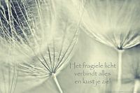 De zaadpluis van de gele morgenster in al zijn fragiliteit vastgelegd door de fotograaf. Verbonden met een poëtische tekst geeft tezamen een spiritueel tintje.