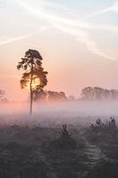 De natuur wordt wakker. Een mistig laagje komt op als de eerste zonnestralen op komen. Wat een zaligheid