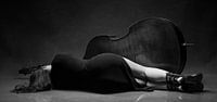 Het model van zowel de vrouw als de contrabas zijn het profiel van die van een zandloper. De meid en het instrument geven hetzelfde beeld en in de zwartwit setting geeft het een sensueel beeld.