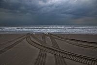 een mysterieus beeld van sporen die zomaar de zee in gaan, Is het Atalntis dat hier voor de kust in zee ligt? hebben de scheepjes aan de horizon er iets mee te maken? het is aan de toeschouwer wat het zal zijn,,,,