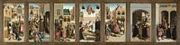 Een Hollandse stad vormt het decor voor een beeldverhaal dat laat zien hoe een goed christen hulpbehoevende mensen moet helpen. Christus staat in bijna elk tafereel tussen de toeschouwers. De scènes geven een indruk van de stedelijke samenleving omstreeks 1500. Tijdens de Beeldenstorm van 1566, waarbij rooms-katholieke kerken door protestanten werden vernield, raakte het werk ernstig beschadigd.