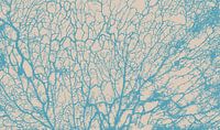Een afbeelding van een bos met bomen en takken in abstracte blauwe lijnen op neutrale beige crème in Scandinavische stijl. Hier kunt u het ook in andere trendy kleuren kopen.