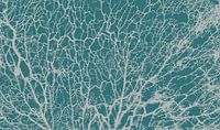 Een afbeelding van een bos met bomen en takken in abstracte grijze lijnen op trendy groenblauw in Scandinavische stijl. Hier kunt u het ook in andere trendy kleuren kopen.