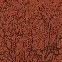 Een voorstelling van een bos met bomen en takken in abstracte donkerbruine lijnen op een achtergrond in warm terracotta in Scandinavische stijl.