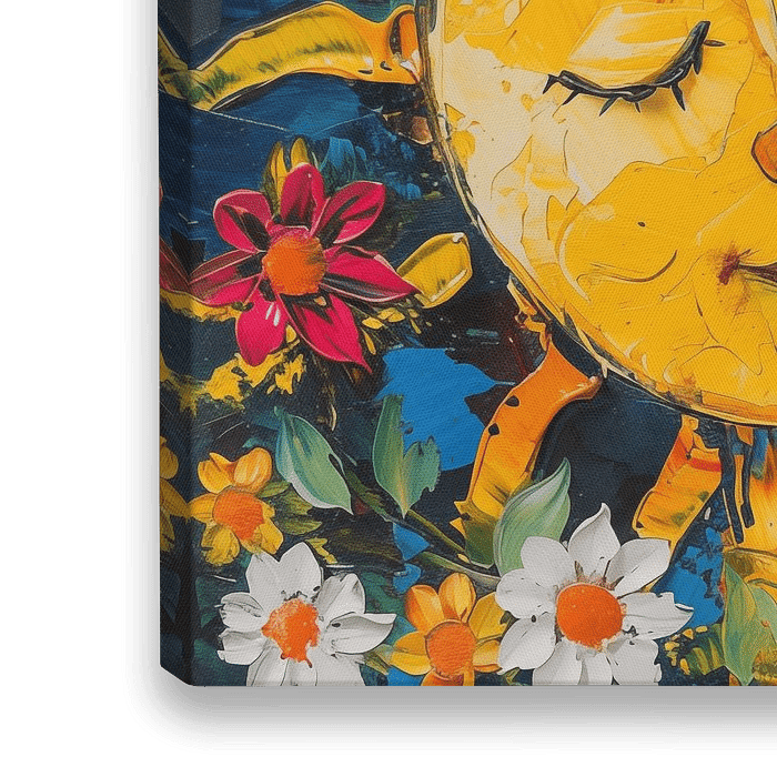 De zon en bloemen abstract schilderij die een vleugje luxe toevoegt aan elke ruimte. Met zijn unieke en stijlvolle uitstraling is het een echte eyecatcher. De prachtige kleuren en het bijzondere ontwerp maken dit kunstwerk volledig uniek en origineel. Het is de perfecte fotoprint om je interieur helemaal af te maken.