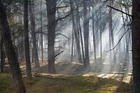 Een mooie ochtend bij landgoed Heidestein bij Zeist (Utrecht). De zon schijnt fantastisch door de bomen en geeft mooie kleuren aan het mos op de grond.
