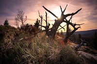 Een wortel en de zon. Fantastische opname op de Sonnenberg in de Harz.