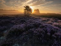 De heidevelden in de duinen tussen Bergen en Schoorl zijn ieder jaar een mooie uitdaging om te fotograferen. Of je zet de wekker om 05.00 uur voor de zonsopkomst met hopelijk wat grondmist boven de heide , of je pakt vanaf de heuvels de zonsondergang mee met de paarse heide op de hellingen.