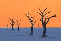 Zonlicht op de duinen en schaduw op de bodem van de Deadvlei