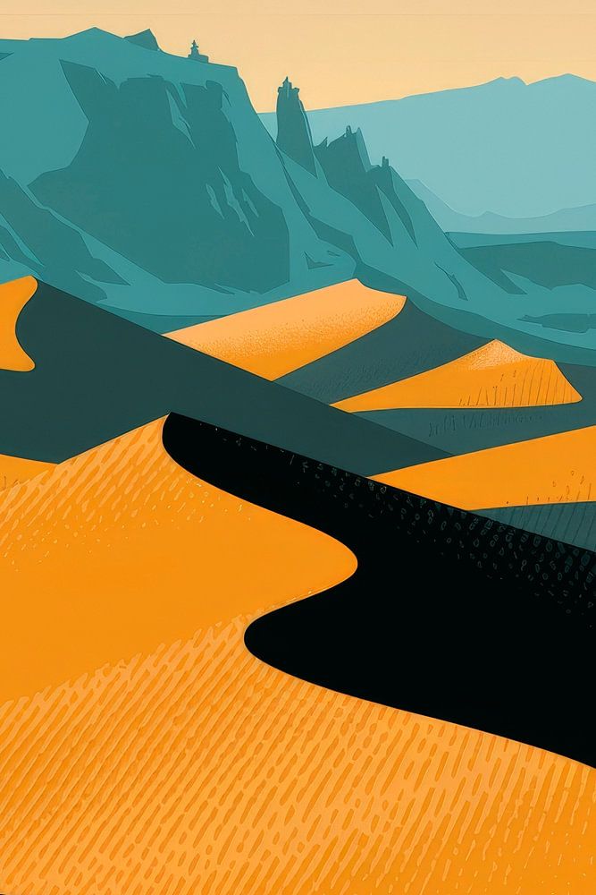 De zachte golven van de gouden zandduinen in de woestijn voeren de kijker mee naar een dromerig landschap dat rust en een gevoel van avontuur uitstraalt. De harmonieuze kleuren geel en blauw geven het tafereel een bijzondere diepte. Dit kunstwerk is ideaal voor de woonkamer en creëert een inspirerende sfeer die uitnodigt om te dromen.