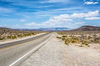 Death Valley is een woestijnachtig dal in de Amerikaanse staat Californië. Death Valley, eenzame weg en fraaie luchtpartij