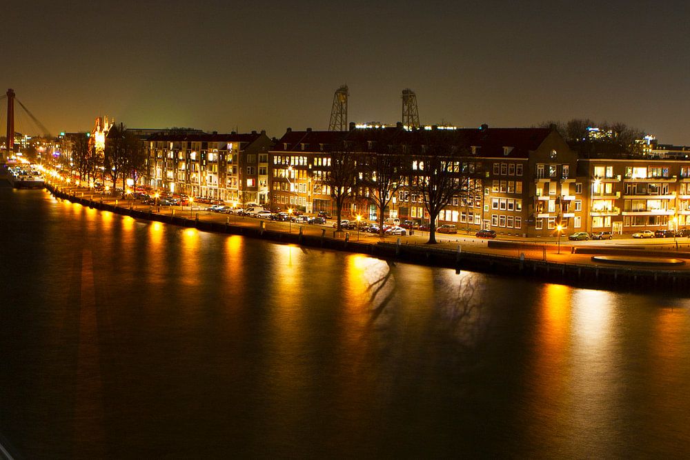 Een typisch Rotterdams plaatje in december. De lichtjes staan aan en toevallig kwam er net een boot passeren wat deze plaat een extra draai geeft.