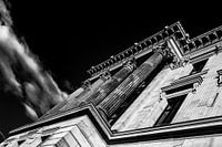 Deel van de gevel van het Residenzschloss in Braunschweig, Duitsland met kolommen in zwart en wit