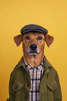 Met zijn charmante uiterlijk en stijlvolle outfit straalt deze Deens-Zweedse boerenhond een onmiskenbare nuchtere houding uit. De combinatie van slimme hoed en casual jasje geeft hem een onmiskenbare persoonlijkheid. Zijn attente uitdrukking en zachte oren geven de essentie weer van een trouwe metgezel die altijd klaar is voor nieuwe avonturen.