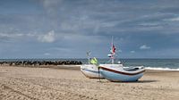 In Denemarken worden de vissersboten vaak op het strand getrokken om daar te verblijven als ze niet gebruikt worden. Zo kan dat een leuk beeld vormen zeker met de mooie luchten die in je Denemarken hebt aan de kust. Soms dreigende wolken en soms vriendelijke blauwe luchten.