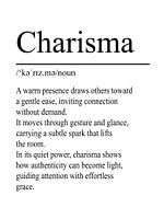 Deze minimalistische typografische poster richt zich op het concept charisma en brengt de kracht van authenticiteit, aanwezigheid en stille impact over.