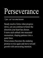 "Perseverance" staat voor doorzettingsvermogen, consistentie en innerlijke vastberadenheid. Deze minimalistische typografie poster brengt de betekenis van de term in een rustig en krachtig ontwerp.