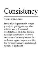Consistentie beschrijft de kalme kracht die voortkomt uit regelmatige beslissingen. Deze typografieposter vertaalt de betekenis van de term in een helder, minimalistisch ontwerp.
