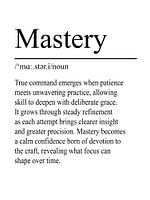 Meesterschap beschrijft de ontwikkeling van vaardigheden door voortdurende oefening, focus en toewijding. Deze typografische poster benadrukt het concept op een rustige, heldere en verfijnde manier.