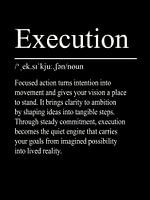 Deze minimalistische typografische poster richt zich op de term uitvoering en symboliseert doelgerichte actie en duidelijkheid. Het minimalistische ontwerp ondersteunt een gerichte en moderne sfeer.
