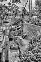 Prachtig gedetailleerde zwart-wit foto van het oude Delfshaven in Rotterdam. Alsof de tijd heeft stil gestaan.