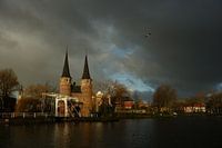 Koop de foto Delft Oostpoort met een donkere onweerswolk van Alice Berkien-van Mil op canvas, aluminium dibond, (ingelijste) fotoprint, behang en ArtFrame, op maat geprint in Fine-Art kwaliteit.