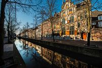 De stad van de schilder Vermeer Delft met z,n architectuur en diverse kerken en oude historische gebouwen gereflecteerd in de grachten.
