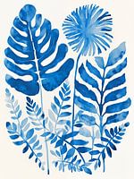 Botanische Kunst in de kleur Indigo blauw. In de sfeer van Delfts blauw.