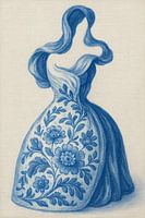 Een verfijnd Delfts Blauw kunstwerk waarin vloeiende lijnen samenkomen met een rijk bloemendessin. De combinatie van klassieke blauwe patronen en een moderne, abstracte vorm maakt dit werk uniek en stijlvol voor elk interieur.