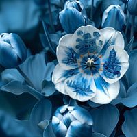 Delfts Blauwe Tulp Met Hollands Landschap van Studio Ypie