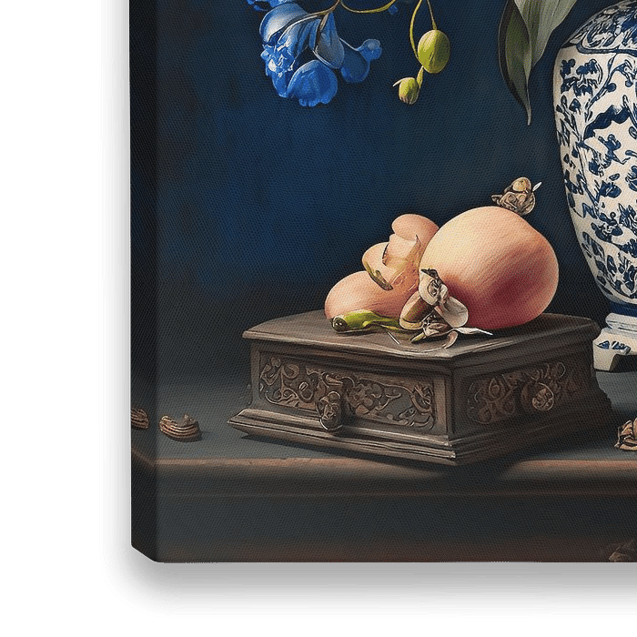Het schilderij toont een prachtige antieke Delfts blauwe vaas die gevuld is met een weelderig zomerboeket. Het boeket bestaat uit een kleurrijke mix van bloemen.De vaas zelf is een kunstwerk op zich, met prachtig gedetailleerd aardewerk. Het schilderij straalt een klassieke elegantie uit, en het stilleven is op een perfecte manier in balans gebracht. Het zorgt voor een gevoel van rust en sereniteit. Het klassieke stilleven ademt een gevoel van nostalgie en tijdloosheid uit, waarbij het tafereel lijkt te zijn gevangen in een moment van perfectie. De vaas zelf straalt een aura van elegantie en verfijning uit en is duidelijk met vakmanschap vervaardigd. Dit schilderij is een eerbetoon aan de natuurlijke schoonheid van bloemen en de artistieke traditie van het stilleven.