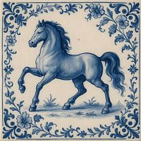 Op dit Delftsblauwe tegeltje prijkt een paard vastgelegd in tijdloze eenvoud.