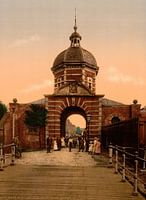 Foto van Delftse Poort, Leiden, gefotografeerd tussen 1890 en 1900.