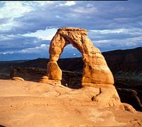 Delicate Arch, utah, national park, USA, verenigde staten, woestijn, mensen, wandelaars, moab, wolkenlucht,