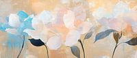 Delicate bloemen ontvouwen hun schoonheid in zachte pasteltinten en geven de kamer een vleugje elegantie. De harmonieuze combinatie van blauwe en beige accenten creëert een rustgevende sfeer. Dit kunstwerk is ideaal voor de slaapkamer en creëert een oase van rust voor ontspannende momenten en dromerige nachten.