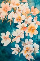 Zachte pastelkleuren dansen harmonieus op een rustgevende blauwe achtergrond, terwijl tere bloemen in volle bloei staan. Deze aquarelcompositie roept lentefrisheid en lichtheid op in elke kamer. Ideaal voor de slaapkamer, waar het een vredige sfeer creëert, of in de woonkamer om een vleugje elegantie en natuur toe te voegen.