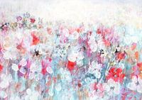 Een subtiele bloemenfoto met kleine bloemetjes voor in de woonkamer. Het straalt optimisme en vrolijkheid uit. De schoonheid van de natuur is altijd een onuitputtelijke bron van inspiratie. Bloemfantasieën zijn kunstig geënsceneerd..bloemen, bloesems, bladeren....Waterverfschilderij met fantasiebloemen in ingetogen crème- en pasteltinten