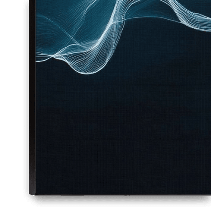 Zachte, vloeiende lijnen omarmen de kamer met een harmonieuze lichtheid die tegelijkertijd een gevoel van beweging en rust uitstraalt. Het subtiele blauwe en zwarte kleurenschema zorgt voor een moderne elegantie. Dit kunstwerk is perfect voor een kantoor of woonkamer en creëert een rustgevende sfeer die inspiratie en creativiteit…