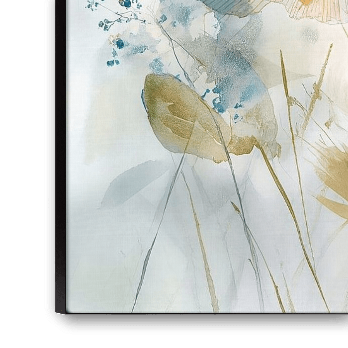 Een etherische aquarel compositie van luchtige klaprozen in zachte pasteltinten. De bloemen zweven als transparante zijde tegen een lichte achtergrond, waarbij roze, crème en subtiele blauwtinten in elkaar overvloeien. De delicate details in de bloemen en de losse botanische elementen creëren een dromerige, romantische sfeer die rust en elegantie uitstraalt.
