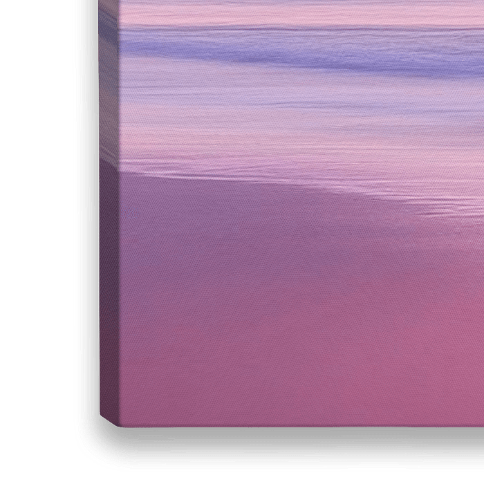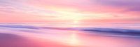 Een zachte overgang tussen lucht en water, afgewisseld met pastelkleuren, wekt de ziel. De zon kust de horizon terwijl zachte golven de kust omarmen, een delicate sluier van licht en rust. Deze romantische symfonie van roze en blauw roept een vredige sfeer op die uitnodigt om te dromen en de tijd doet stilstaan.
