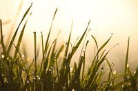 Bij zonsopgang schijnen de waterdruppels als duizend lichtjes op de grassprieten. Dieren zoals vogels en insecten krijgen daar in de ochtenduren hun watervoorziening.