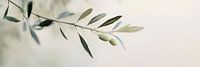Zachte groentinten en tere bladeren ontvouwen zich in harmonieuze elegantie, terwijl het silhouet van een olijftak soepel opgaat in de rust van de achtergrond. De delicate vormen stralen een subtiele gratie uit die doet denken aan mediterrane landschappen en de schatten van de natuur. Een sfeer van vrede en natuurlijkheid omringt deze delicate expressie van het leven.