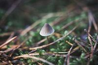 Delicate paddenstoelen filigraan op de bosgrond van Martin Köbsch
