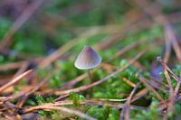 Delicate paddenstoelen filigraan op de bosgrond van Martin Köbsch