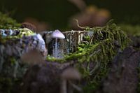 Delicate paddenstoelen filigraan op de bosgrond van Martin Köbsch